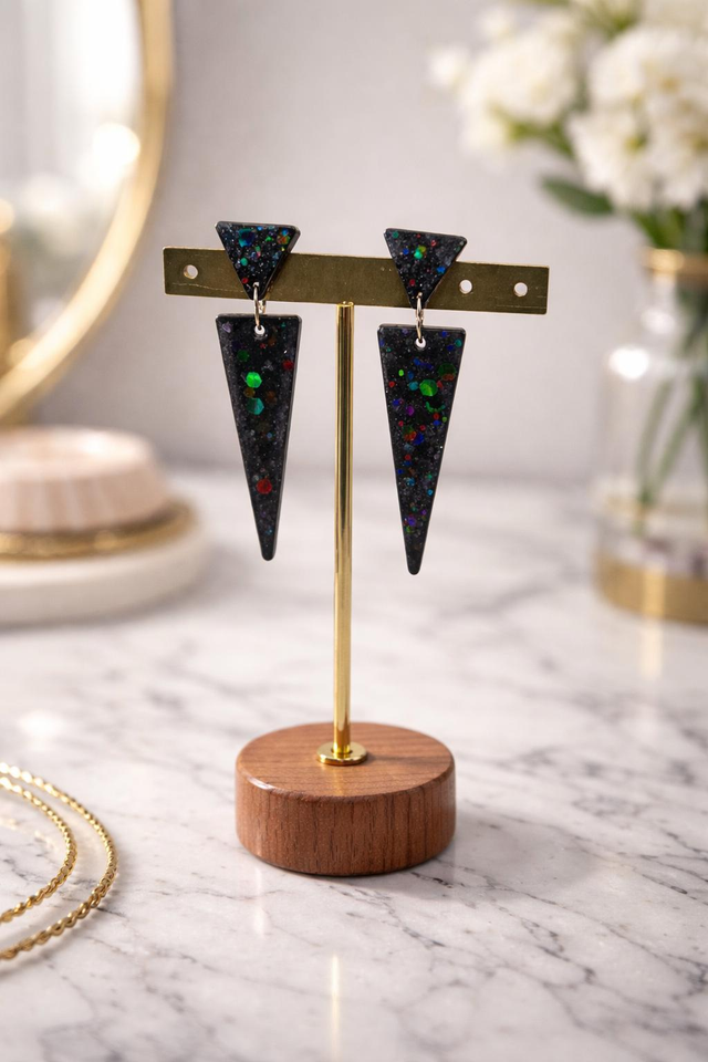 Façonnées à la main dans notre atelier familial à Rennes, les pièces Dark Blue révèlent une profondeur envoûtante. La résine haut de gamme capte la lumière avec finesse, laissant apparaître, au fil des mouvements, des reflets bleus discrets et hypnotiques, comme des fragments d’étoiles dans l’obscurité.