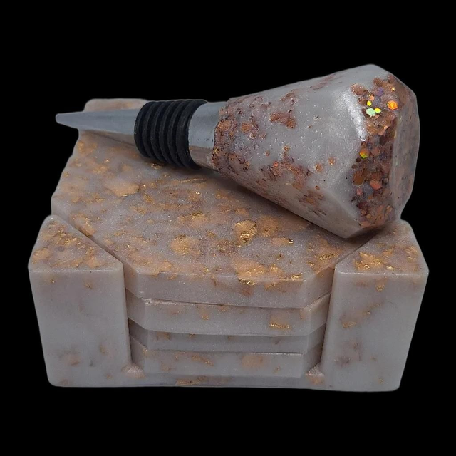 Chaque dessous de verre est façonné à la main dans notre atelier familial à Rennes. La résine haut de gamme révèle des couleurs lumineuses et des effets de matière uniques, travaillés avec des pigments fins qui captent la lumière avec subtilité.