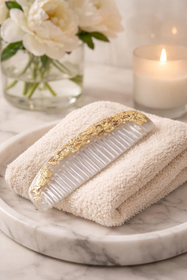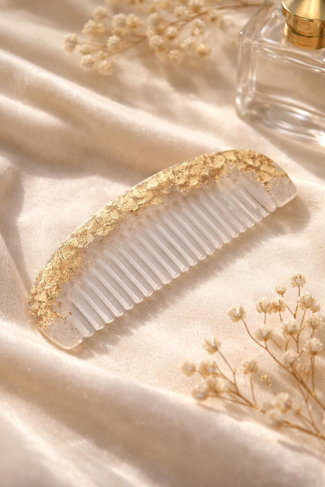 Chaque pièce capte la lumière avec élégance, révélant des reflets soyeux et raffinés qui subliment toutes les coiffures. Pensés pour allier beauté et utilité, ces peignes transforment un geste quotidien en un rituel de luxe discret.